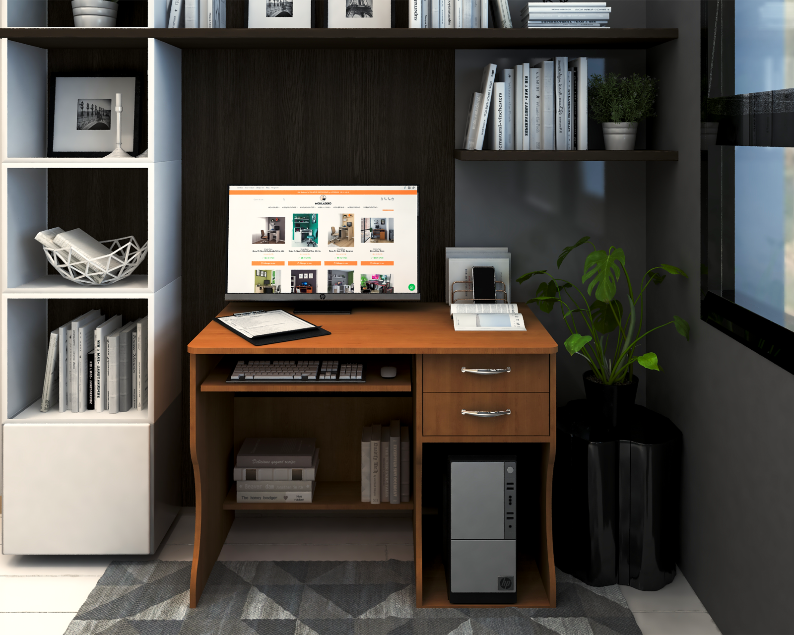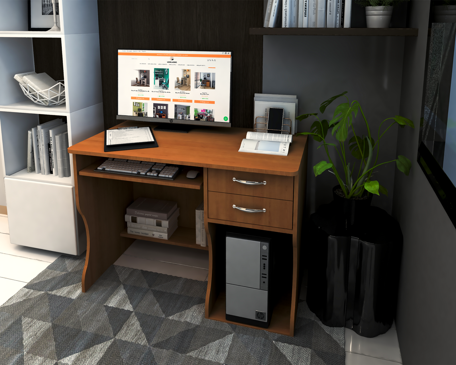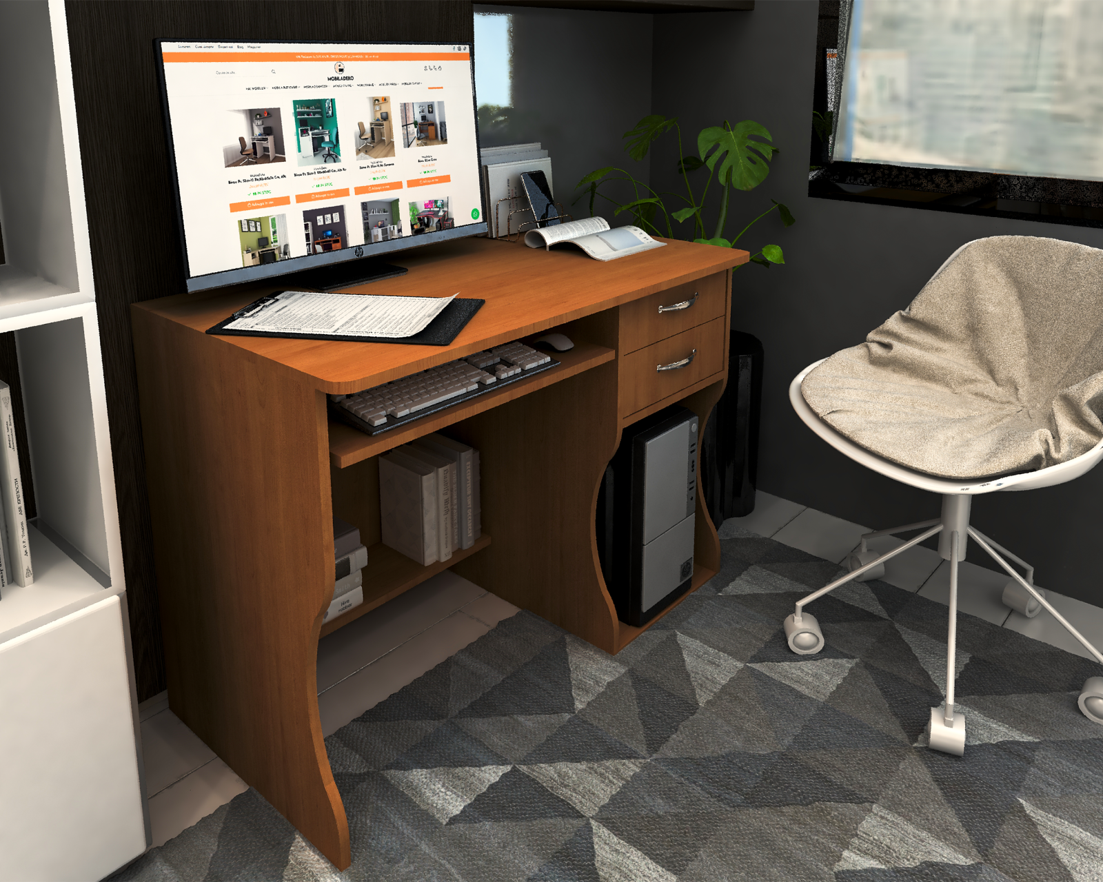 Biroul este dotat cu 2 sertare pentru depozitare si suport glisant pentru tastatura.