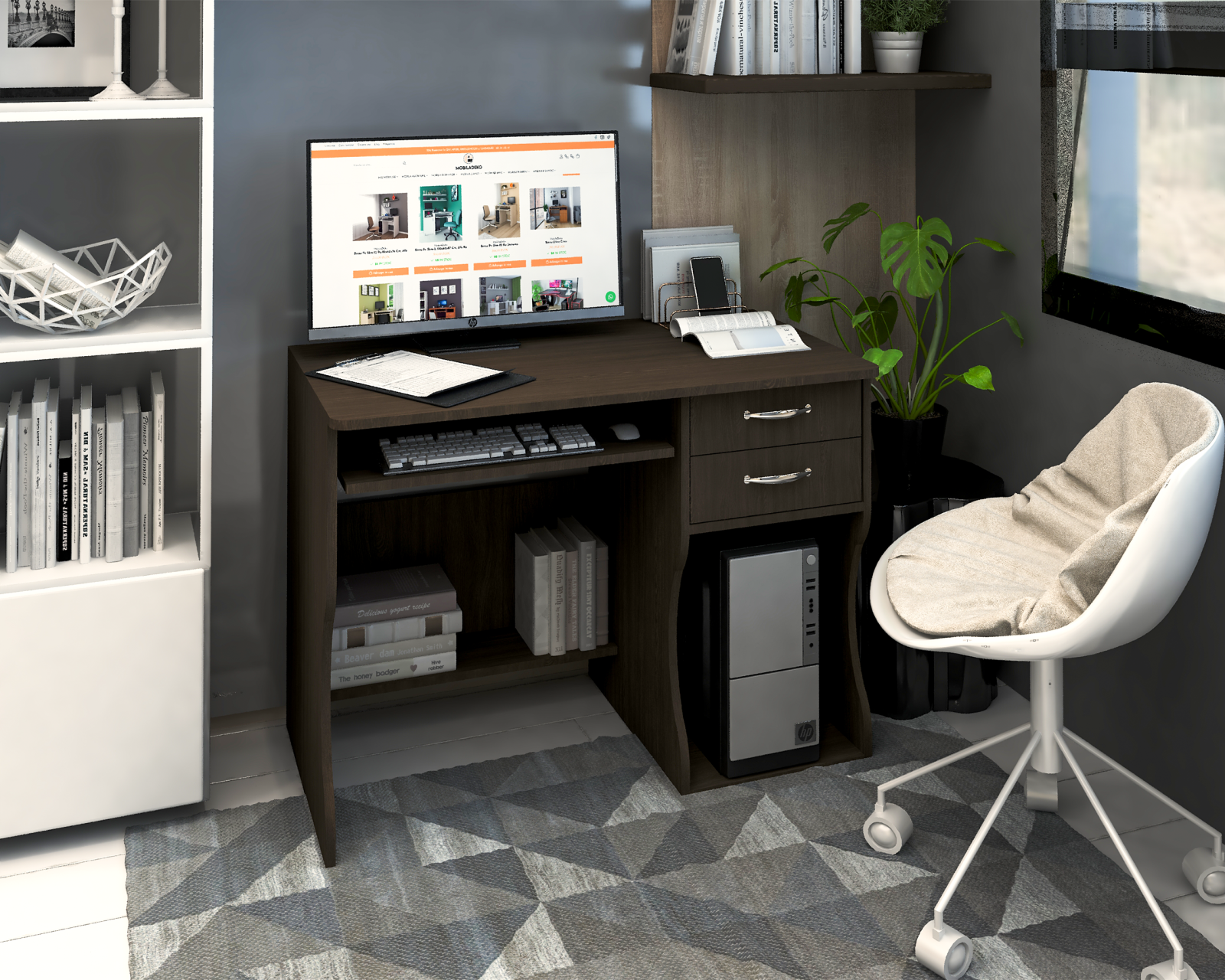 Biroul este dotat cu 2 sertare pentru depozitare si suport glisant pentru tastatura.