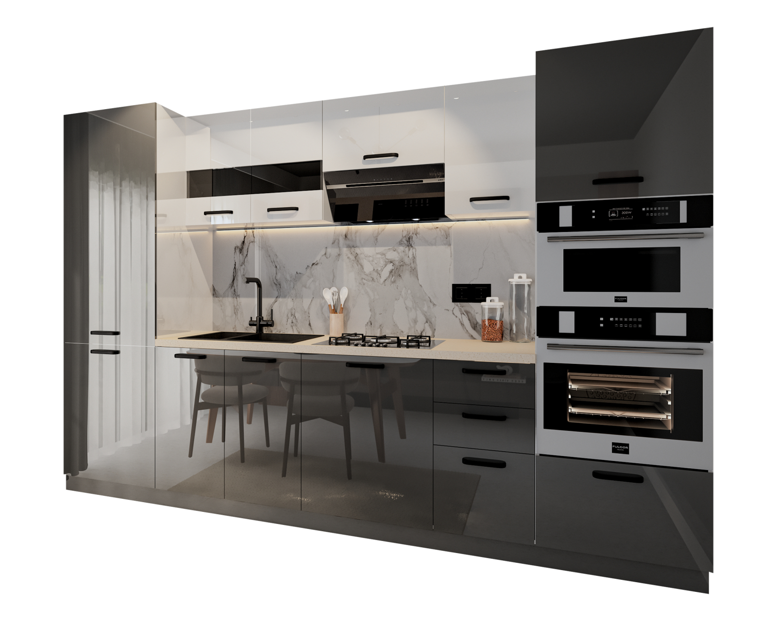 ● Front: MDF Alb+Gri antracit