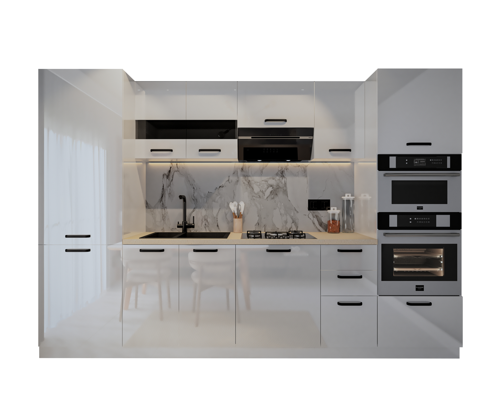 Bucatarie Daria, MDF Alb Lucios, 300x60x200cm