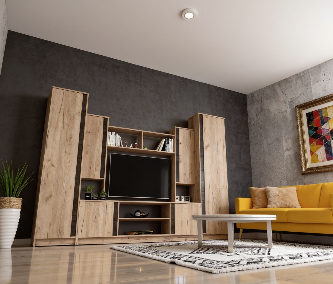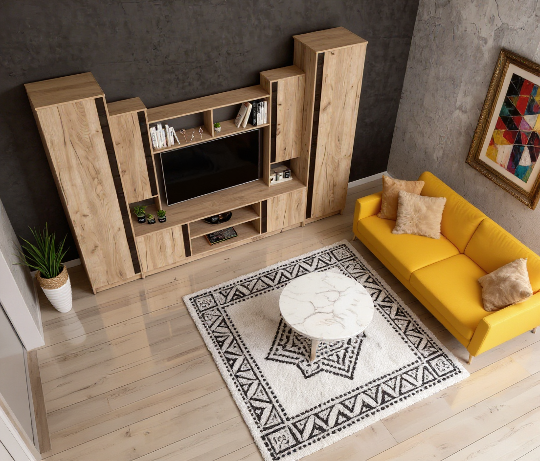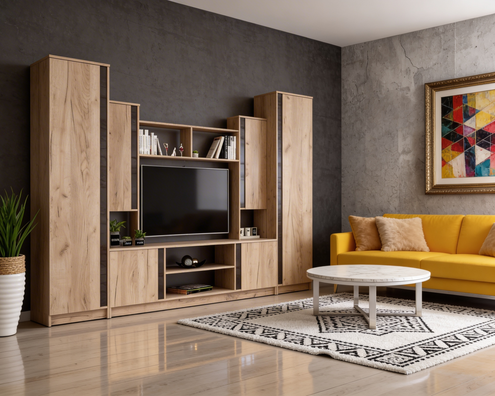 Set de mobilier pentru living, cu design modern, conceput pentru organizare eficientă și o zonă TV bine integrată în ansamblu.