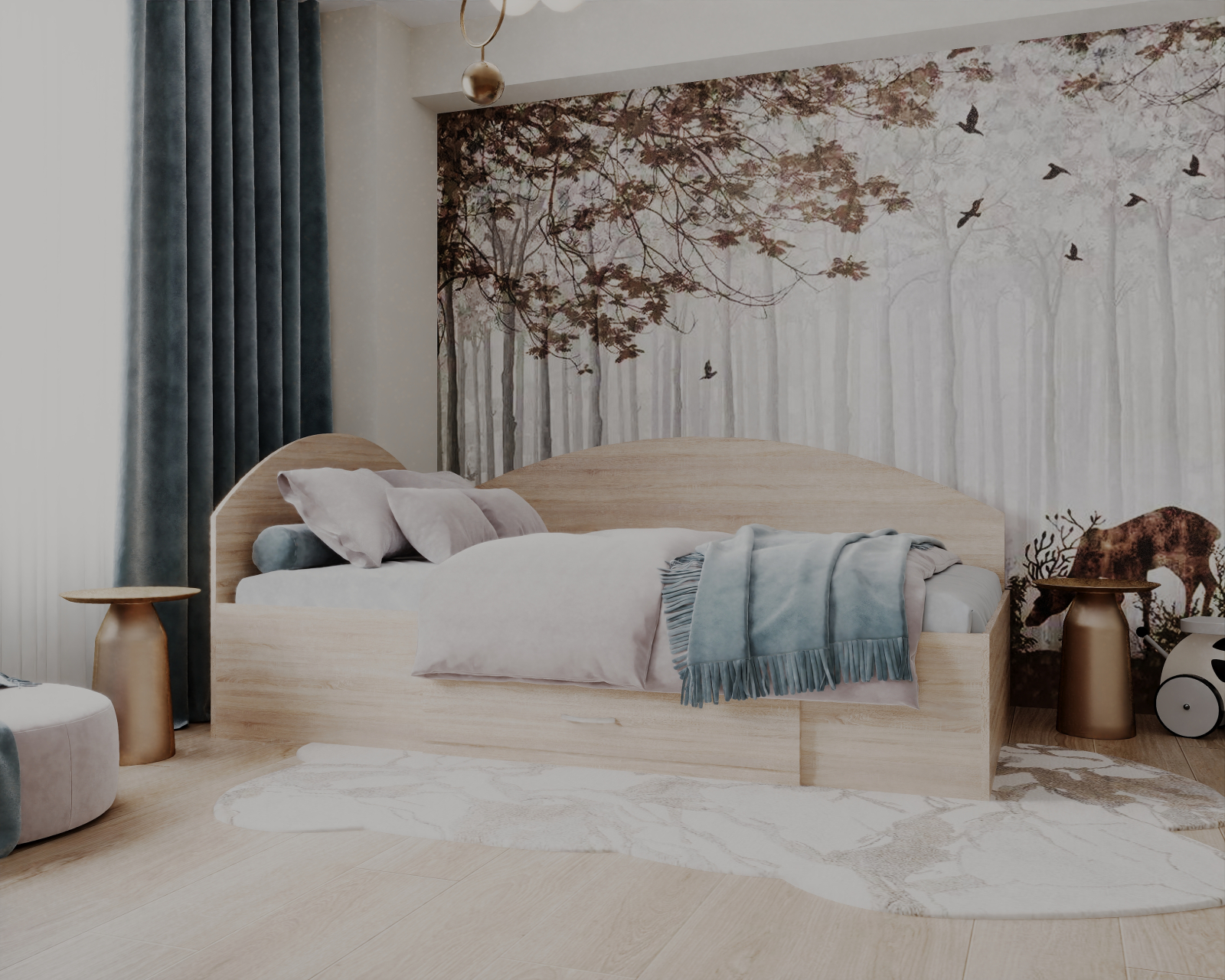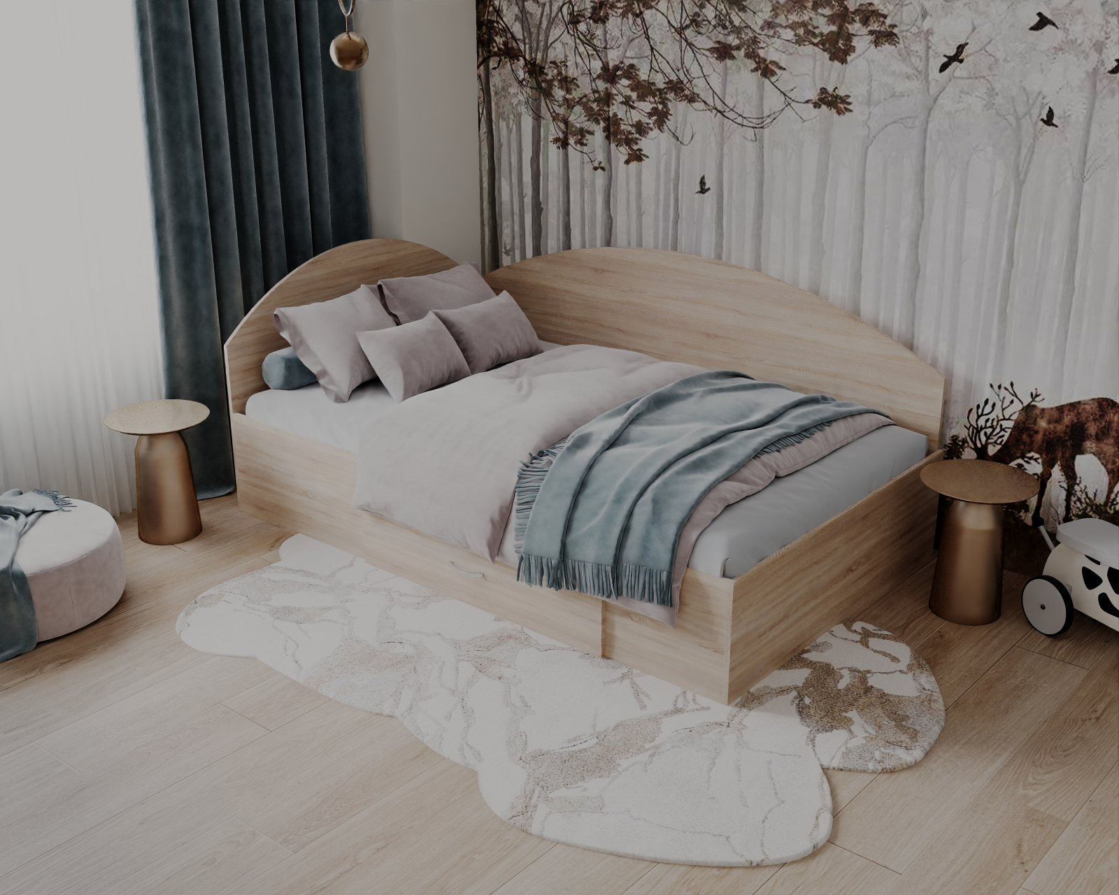 Patul se poate monta si in "oglinda" (este potrivit pentru orice colt al camerei)!