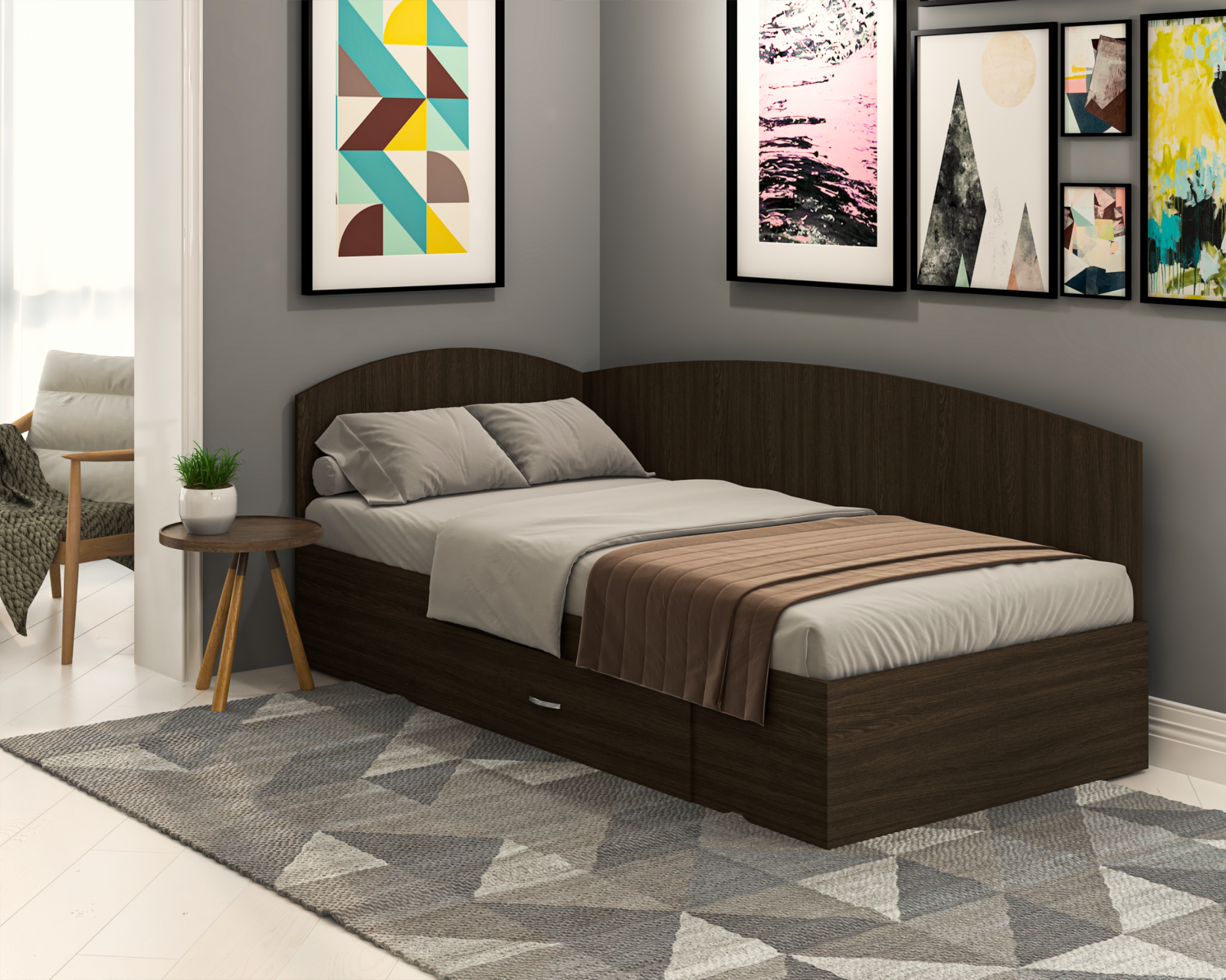 Patul se poate monta si in "oglinda" (este potrivit pentru orice colt al camerei)!