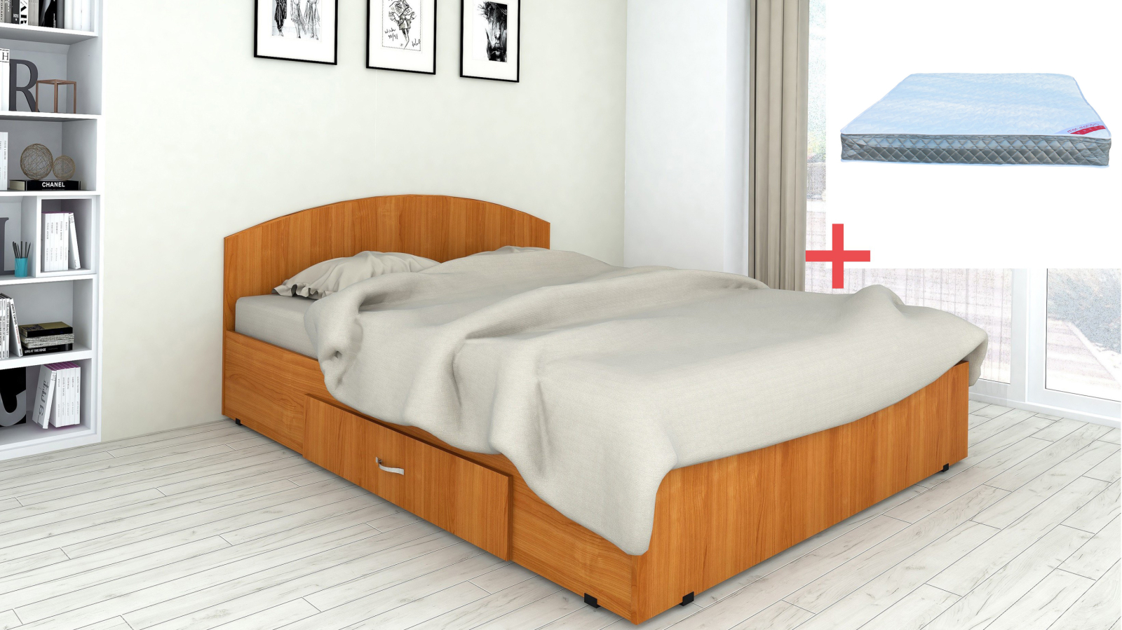Set pat mijloc 160 + Saltea Bonnell cu Arcuri, Cires
