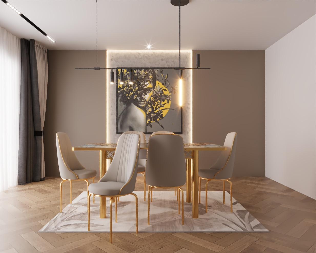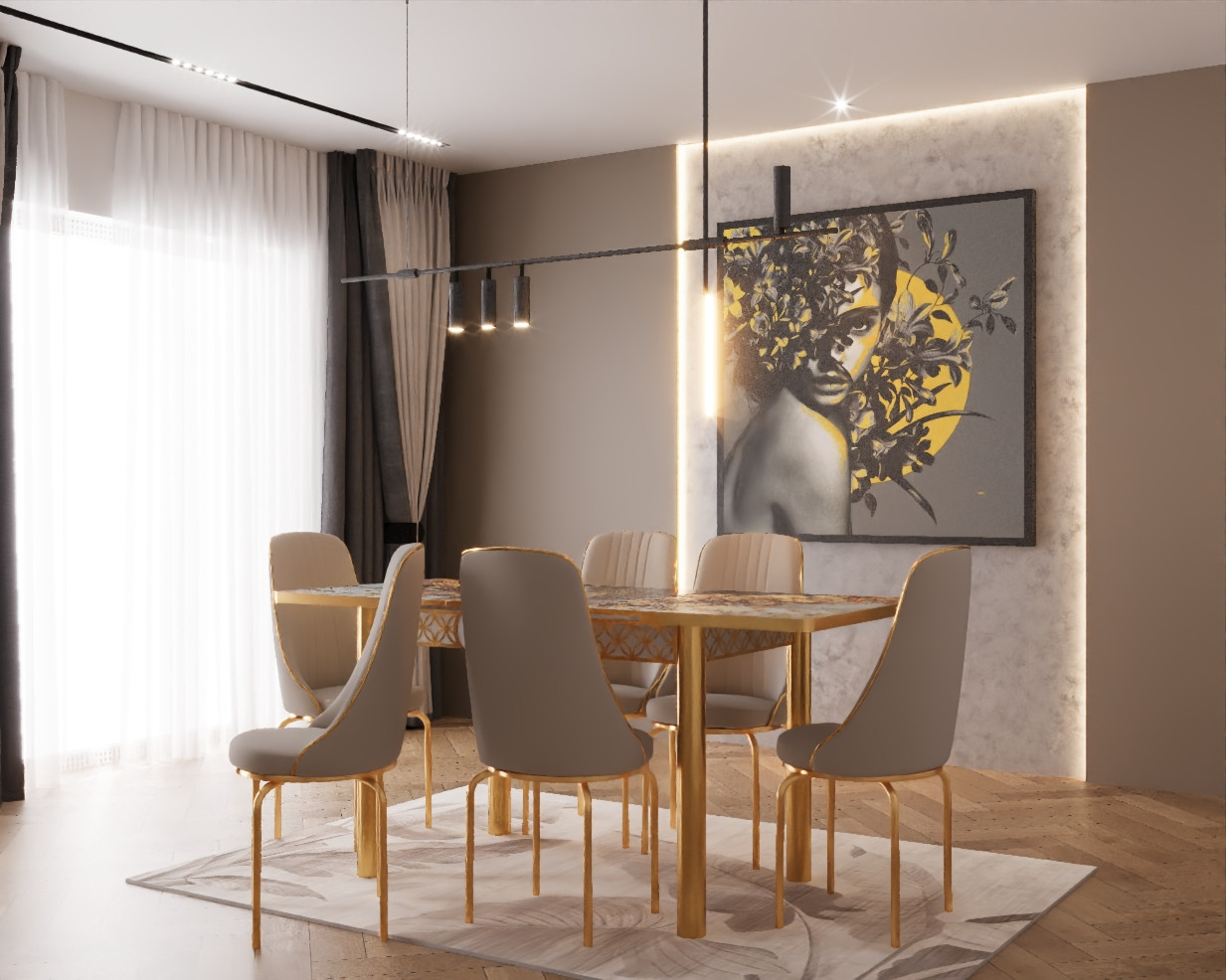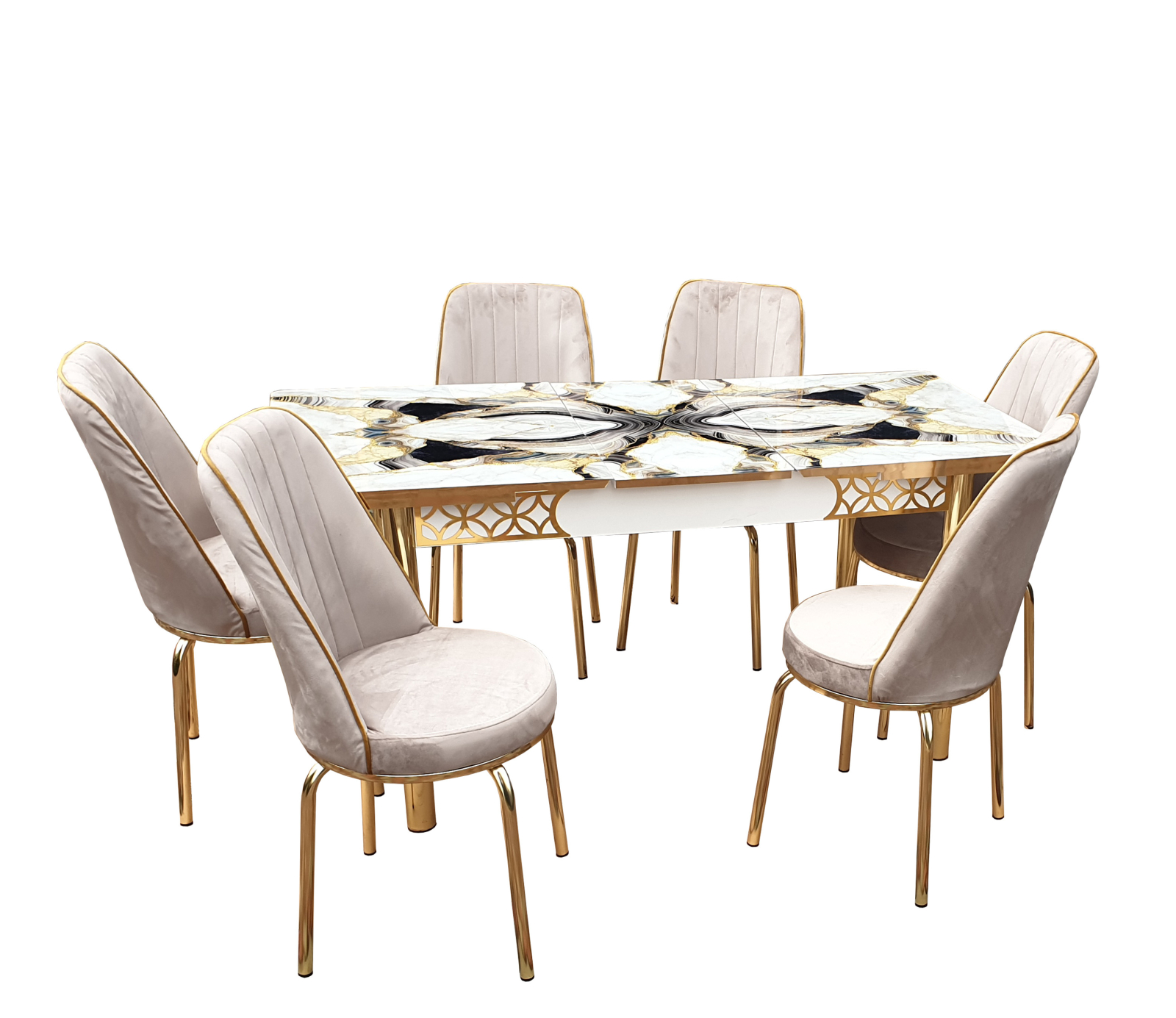 SET MASA 6 SCAUNE ALTIN 3, GRI, BEJ
