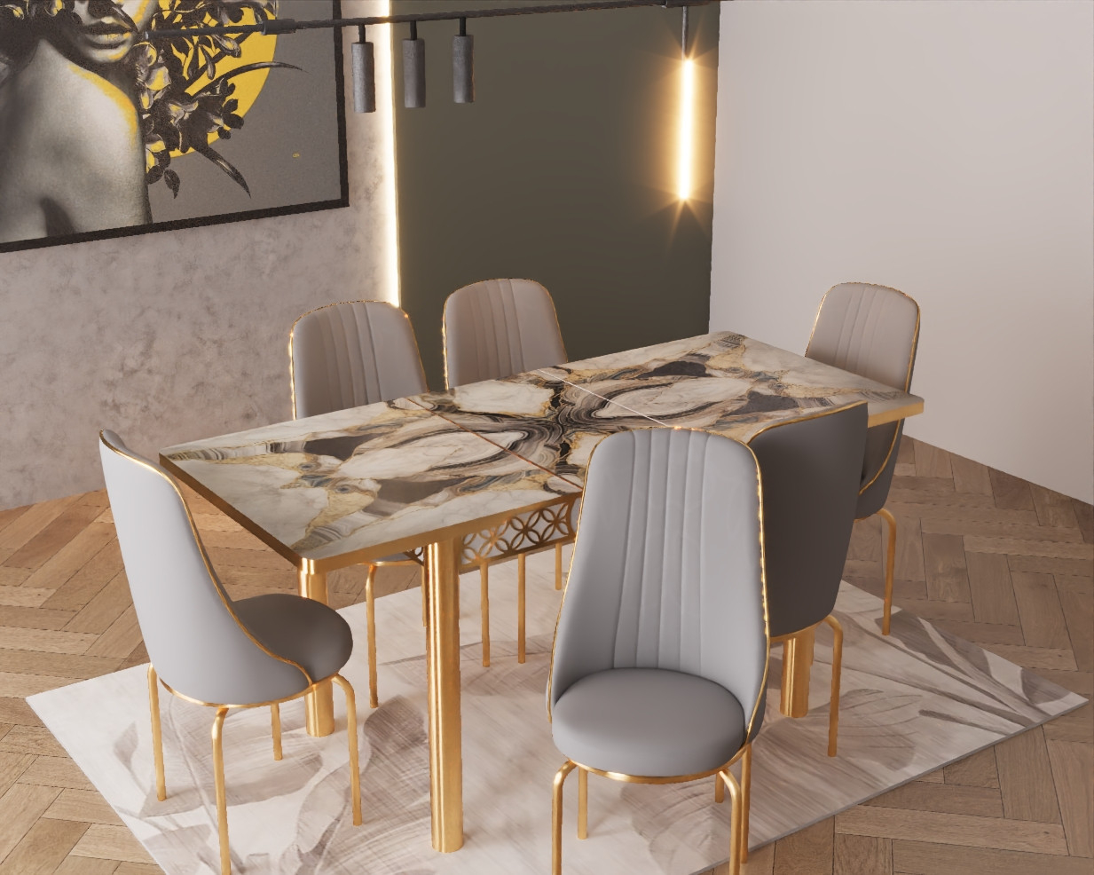 SET MASA 6 SCAUNE ALTIN 4, GRI